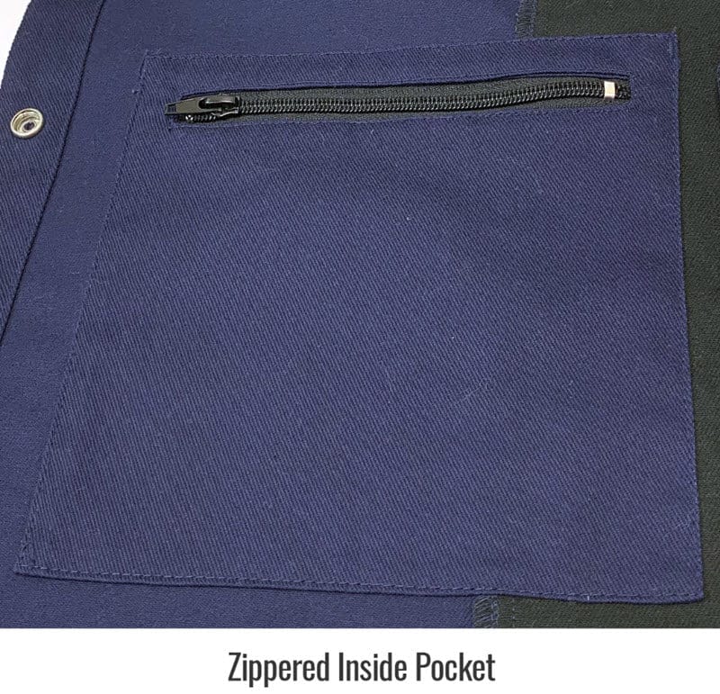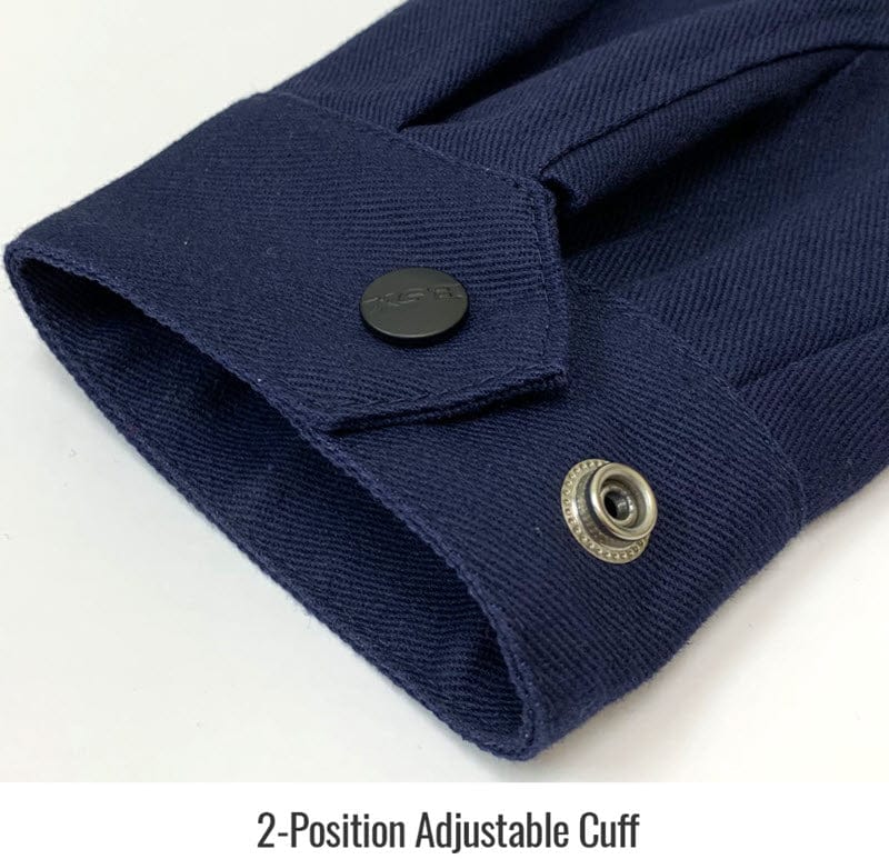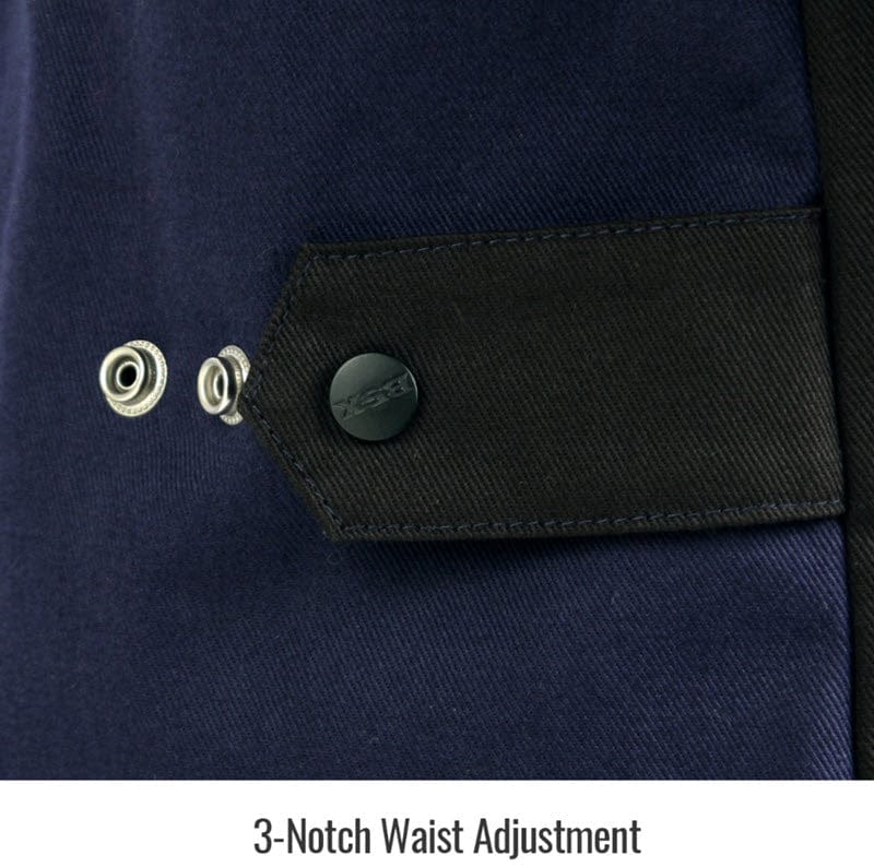 Genuine AngelFire® JF1015-NB Women's welding jacket is constructed of 9 ounce flame resistant navy cotton. It is tailored exclusively for women and features waist adjustment strap for a custom fit. FR cotton provides comfort and a cooler welding experience for light duty MIG and TIG applications. Jacket comes complete with stand-up welders collar, two inside pockets and one pocket on each sleeve. It will hold its flame resistant properties for up to 50 home washings or 25 commercial washings.