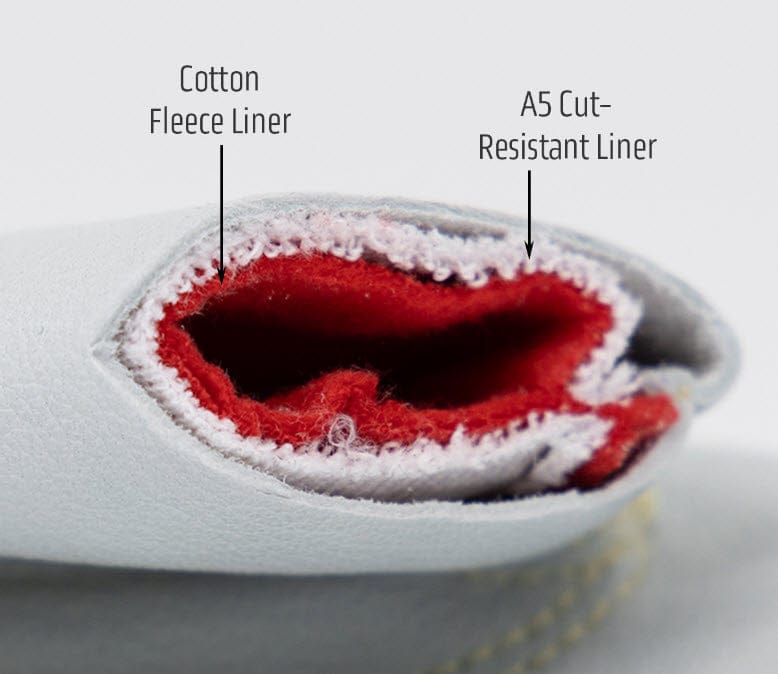 Genuine Black Stallion® 9GWCR cut resistant winter driver's gloves are made of premium grain goatskin leather and carry an ANSI A5 rating for cut resistance. Gloves are fully lined with cut resistant para-aramid fiber, with woven stainless steel fibers, that is difficult to cut or fray. The inner cotton fleece liner provides warmth in cold weather. The goatskin leaher is water-resistant to extend glove life in wet or snowy working conditions.
