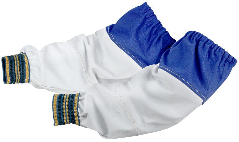 One Pair - Genuine Black Stallion 19-inch Hybrid Welding Sleeves are made from premium grain goatskin leather and 9 ounce FR cotton. The goatskin leather forearm is strategically located in high heat and wear areas. Lightweight flame resistant cotton makes up the top panel of the sleeves. Features include adjustable 2.25 inch elastic cuff and FR cotton upper arm cuff with elastic band.
