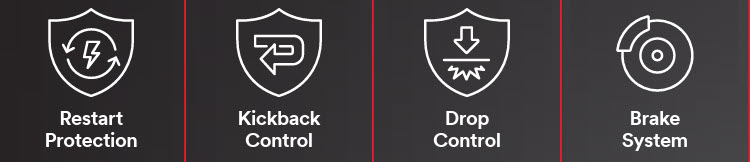 Requires cycling of trigger to the off position for tool to restart if power is lost.
