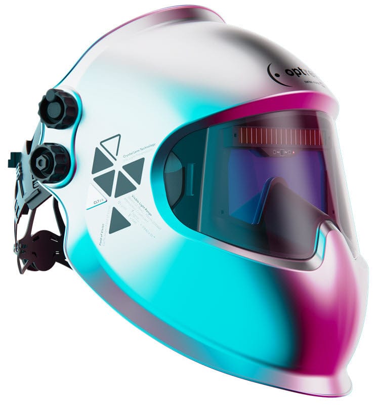 The Optrel® Panoramaxx CLT Silver auto-darkening welding hood features Crystal shade 2.0 light state that is unmatched in the world for color and clarity and provides up to 6X the viewing area of a standard 2" X 4" auto-dark welding lens. The key to this revolutionary technology is the size and shape of the ADF, coupled with the unique Panoramaxx shell design, which allows the welding lens to be positioned closer to your face. The Panoramaxx also has advanced features like SHADETRONIC®, which automatically adjusts the shade level based on the brightness of the arc and True Color, which allows for realistic color perception in light or dark states.