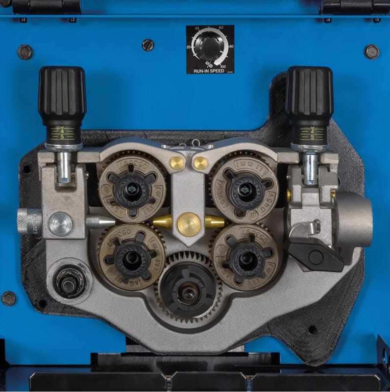 Four gear-driven drive rolls offer smooth, positive and accurate wire feed with long, uninterrupted service life.