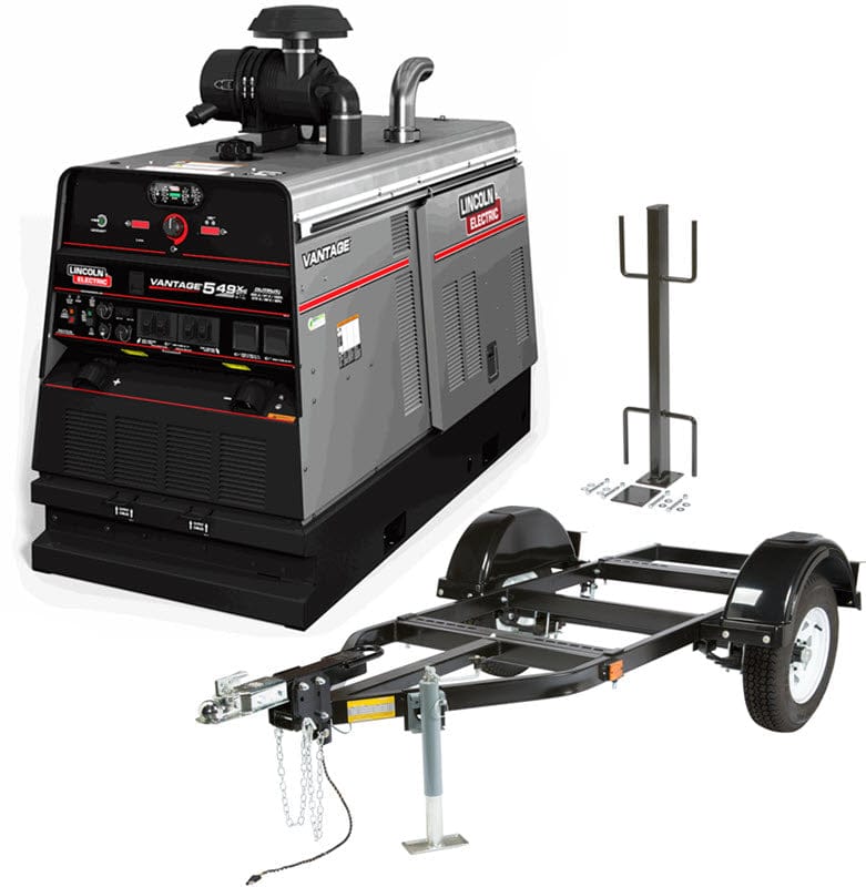 The Lincoln® Vantage® 549X (Deutz®) Ready-Pak® 3 is a fully assembled 575 amp, multi-process diesel engine welder, with highway-ready trailer and cable rack package. The Vantage 549X is equipped with a Deutz® 49.4 HP turbo-charged TD2.9L4 diesel engine. The standard stainless steel side panels and roof extend the life and durability of the welder. Five different welding modes allow you to quickly switch between stick, touch start DC TIG, MIG, flux-cored and carbon arc gouging (with up to 3/8" diameter carbons).