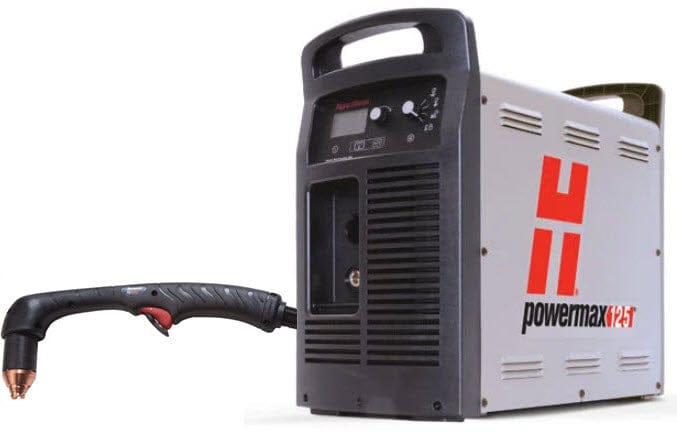 Hypertherm® Powermax30® XP, with 75 degree Duramax™ LT handheld torch, is a 30 amp plasma cutter that is ideal for cutting mild steel up to 3/8 inch thick.