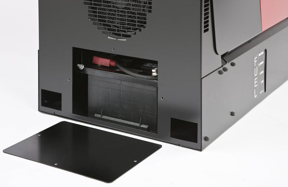 The Ranger 225 produces up to 10,500 peak watts of single-phase AC auxiliary power. Its compact size makes it ideal for hauling in the back of your pickup truck. Three engine access panels and convenient battery access panel help make maintenance quick and easy. A large fuel level indicator is located on both sides of the welder. The Kohler® CH730 two-cylinder gasoline engine produces 23 horsepower at 3,600 RPM.