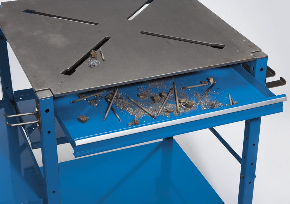 Genuine Miller® ArcStation™ 60WX workbench is specifically designed to fit Miller Weld Boths equipped with 5 ft. or 6 ft. panels. The ArcStation 60WX is an all-in-one workstation engineered for welding and metalworking. It features a 3/8" thick, 30" x 60" steel work surface with a 30" X 30" solid top, and a 30" X 30" X pattern top. Use the X pattern top to connect OPTIONAL Miller X clamps.