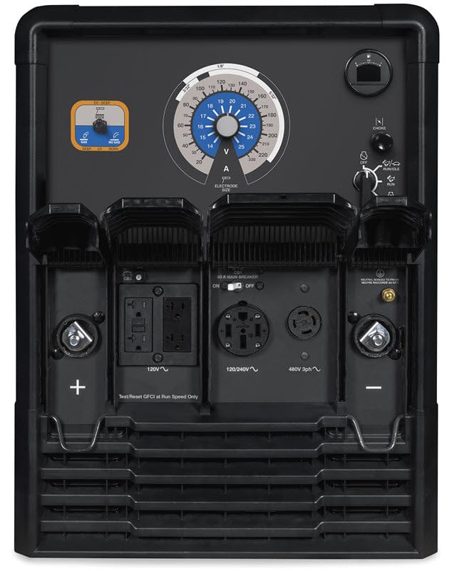 The Bobcat 230 3-Phase is powered by a twin cylinder Kohler® 23.5 horse power CH730 gasoline engine, and has an 11 gallon fuel capacity. The digital fuel gauge also displays maintenance intervals to reduce downtime. The Bobcat 230 provides both CC and CV welding output for stick, DC TIG and MIG welding operations. It comes complete with Miller's True Blue® 3 year warranty.