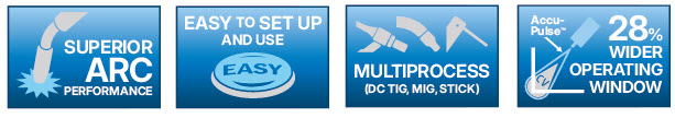 Provides conventional stick, TIG, FCAW, and MIG welding as well as the advanced technologies of RMD and pulse.