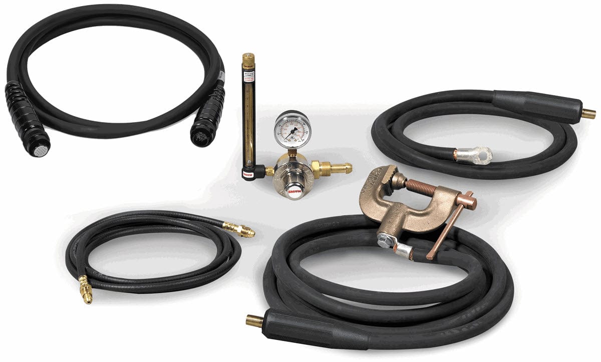 The complete MIGRunner package includes XMT 400 welder, Intellx Pro wire feeder, Bernard™ BTB 400 amp MIG gun, running gear with dual cylinder rack, flowmeter/regulator and all interconnecting cables and gas hose.