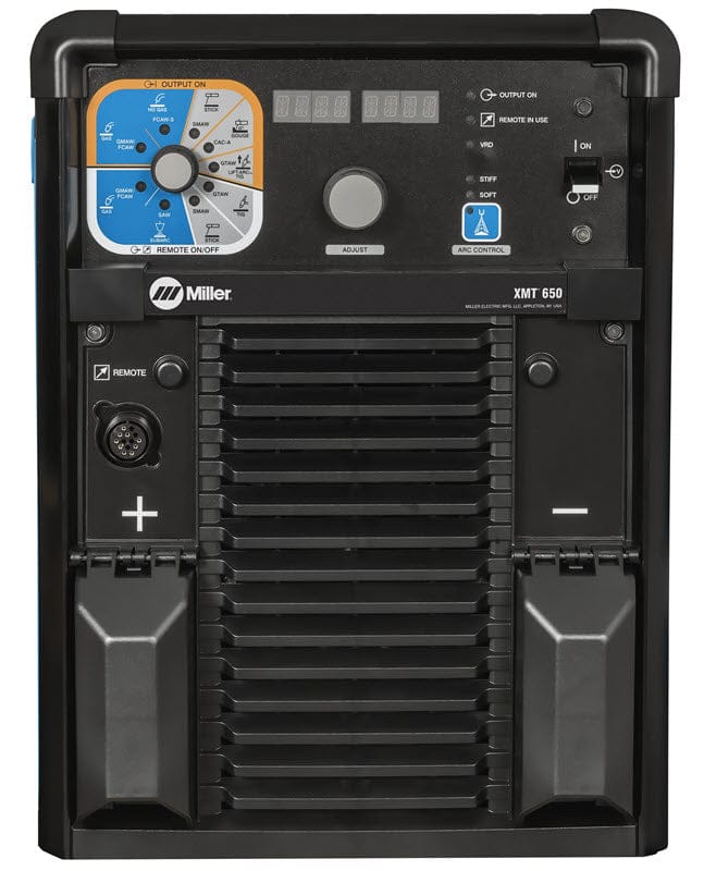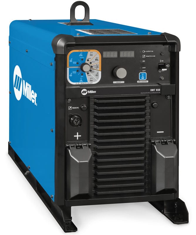 The Miller® XMT™ 650 is a 650 amp multi-process welder that operates on 3-Phase, 460 volt input power. It can perform MIG, TIG, Stick and submerged arc welding. It is also capable of carbon arc gouging with 3/8 inch diameter carbons.