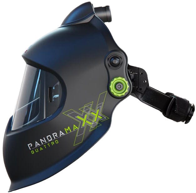 The Optrel® Panoramaxx Quattro auto-darkening welding hood, with perfect 1/1/1/1 optical clarity rating, provides up to 6X the viewing area of a standard 2" X 4" auto-dark welding lens. The key to this revolutionary technology is the size and shape of the ADF, coupled with the unique Panoramaxx shell design, which allows the welding lens to be positioned closer to your face. The Panoramaxx also has advanced features like SHADETRONIC®, which automatically adjusts the shade level based on the brightness of the arc and True Color, which allows for realistic color perception in light or dark states.