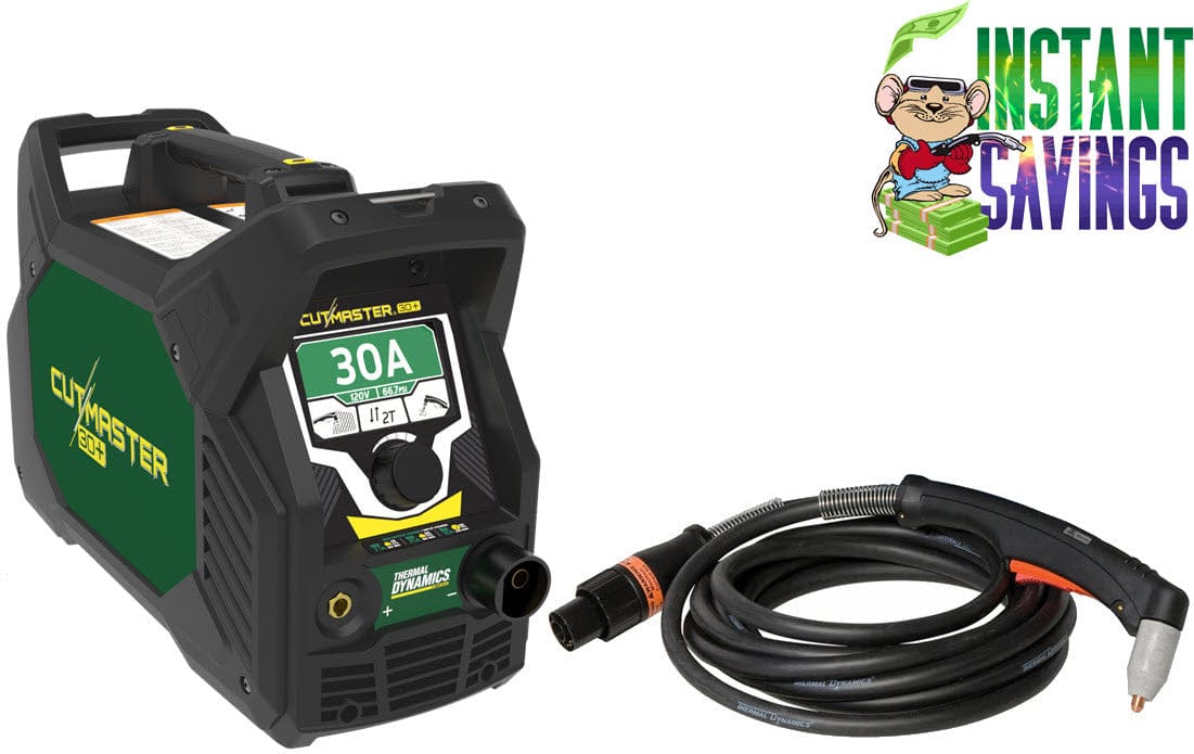 Genuine Thermal Dynamics® Cutmaster® 30+ is a 30 amp plasma cutter that cuts up to 3/8 inch thick mild steel and operates on single-phase, 110V to 240V input power.