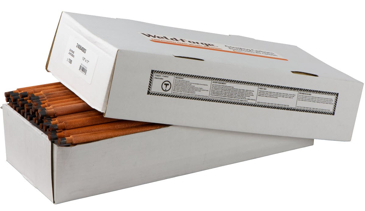 Box of 100 - Weld-Forge™ Jointed Carbon Arc Gouging Electrodes are available in 3/8" to 3/4" diameters. They are manufactured with purified carbon, for the highest standard of consistency. Each carbon arc electrode is double dipped in copper to ensure excellent arc starting and arc stability.