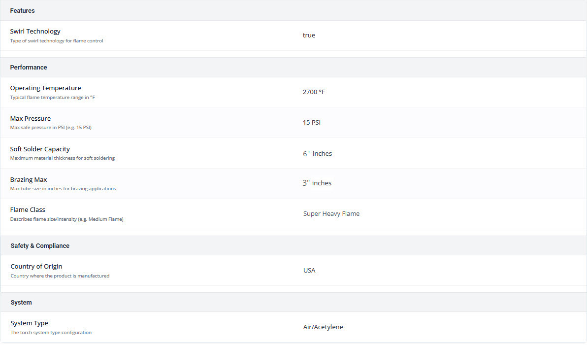 Is compatible with TurboTorch® and other major brands of quick-disconnect torch handles.