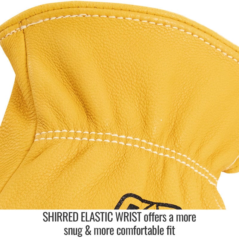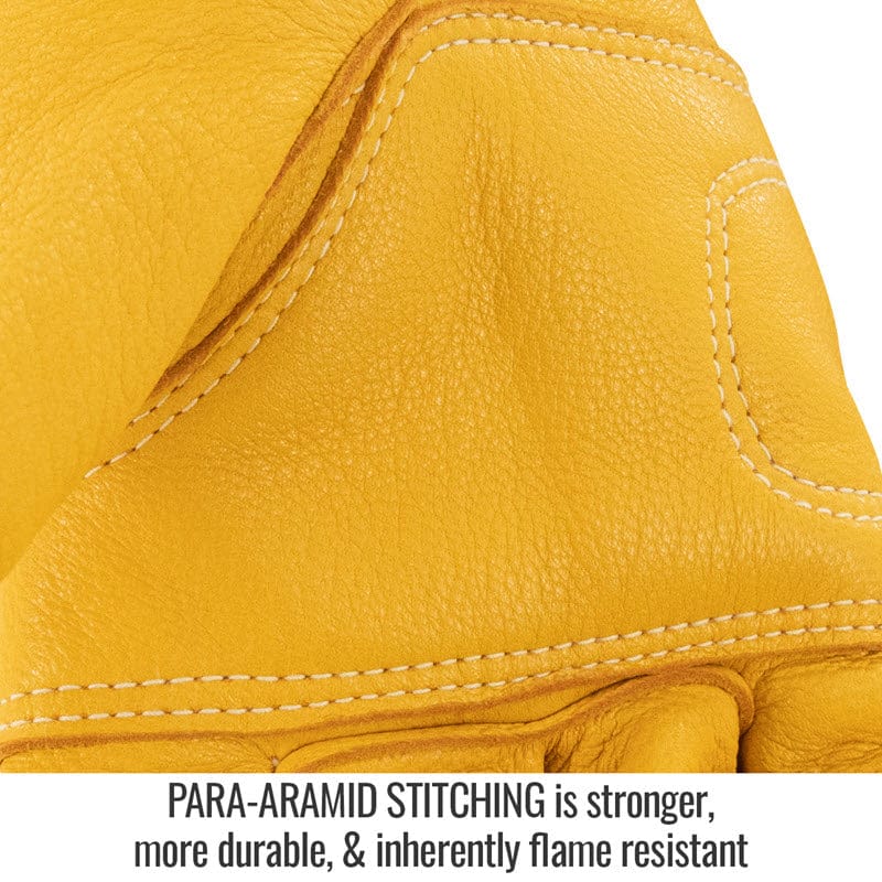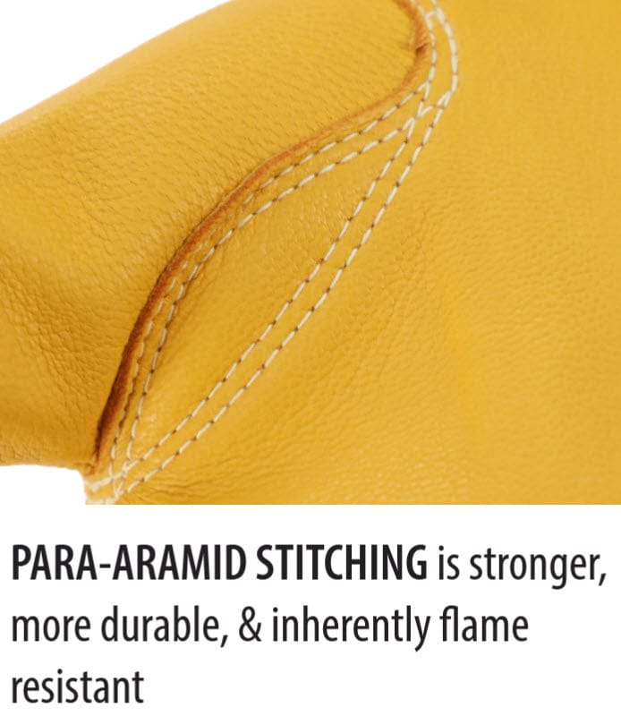 Genuine Black Stallion® 18DP series double palm driver's gloves are made of soft, durable grain deerskin leather and are sewn entirely with para-aramid thread. The reinforced palms feature two layers of leather in key wear areas. Grain deerskin leather offers a secure grip, even when wet. The para-aramid stitching makes these gloves resist sparks and increases their abrasion resistance. The elastic wrists provide a snug fit while keystone thumb improves comfort and control.