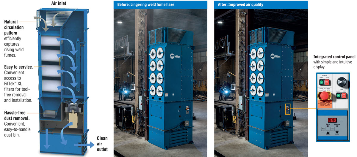 FilTek® XL filters enable more efficient fume capture and extend filter life with a self-cleaning pulsed air system