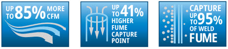 Captures rising weld fume at a height where it lingers, up to 41 percent
