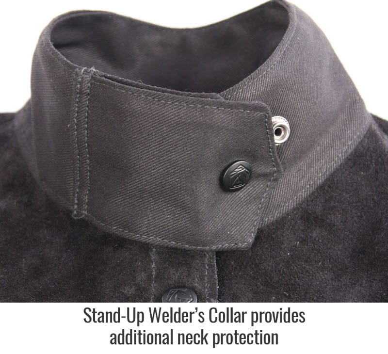 • Stand-up welders collar helps protect neck