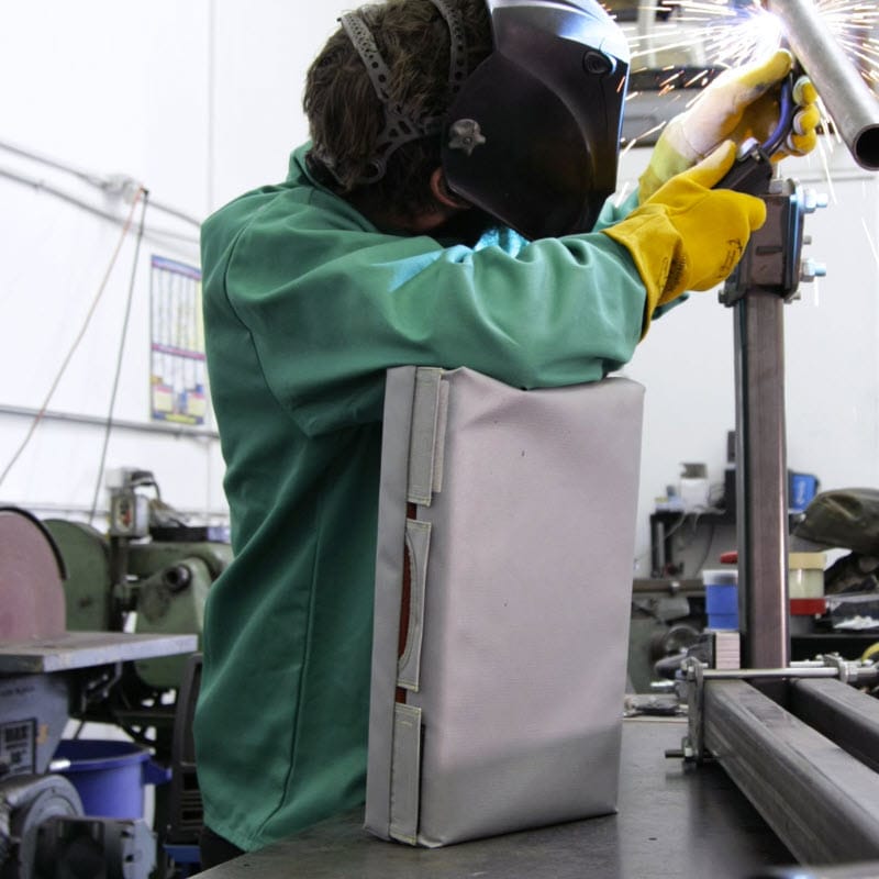 The Black Stallion® SmashPad™ is a FR (Fire Resistant) welding mat that helps reduce fatigue and cushion joints while welding in a kneeing, sitting or leaning position. The SmashPad is made of FR foam cushioning with a 30 ounce, silicon coated fiberglass top surface. It helps prevent pain in knees, elbows, arms and back while welding.