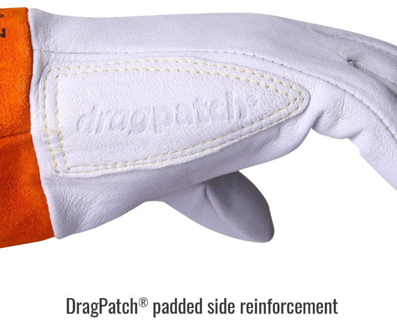 Black Stallion® 24K Kidskin TIG welding gloves are made of high-dexterity leather with premium grain kidskin, and feature DragPatch® to extend the life of the glove. The 2 inch short cuff and Kevlar® stitching will provide added protection from sparks and resistance to abrasion. This glove is the short cuff version of the 25K.