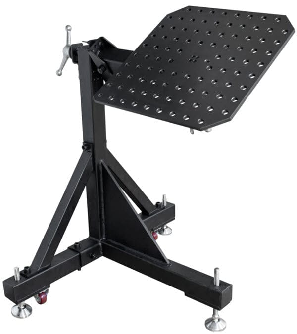 Genuine BuildPro® manipulator is a 20 X 20 inch table with 5/8" holes that allows you to position your work in the ideal spot using two rotating axis and one tilting axis. Manipulator table can be preset at a flat 90 degrees, tilted 45 degrees, or any custom degree configuration you desire. Access difficult joints without putting yourself in an awkward position. Reposition the manipulator quickly, without having to un-clamp any tools. Go from vertical up or overhead to a flat or downhill weld instantly, increasing your productivity and versatility.