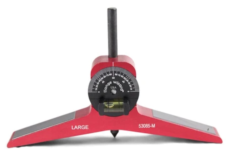 Genuine Flange Wizard® Large Magnetic Centering Head is designed to identify and mark a center-line at any angle around the circumference (inside and out) of 12" ID or larger pipe or tank. Degrees are listed in 2.5 degree increments and inscribed by laser on the dial, making them easy to read. Magnets in the legs allow you to take accurate, hands free measurements and easily move the centering head across the circumference of the pipe. The new hardened center punch with safety head marks your set position by tapping with a hammer. Degree dial has a built in dial for leveling the centering head at various angles. Meant for 12" and larger pipes. The one-piece magnetic Y shaped body is similar to the small and medium centering head models, only wider and larger.