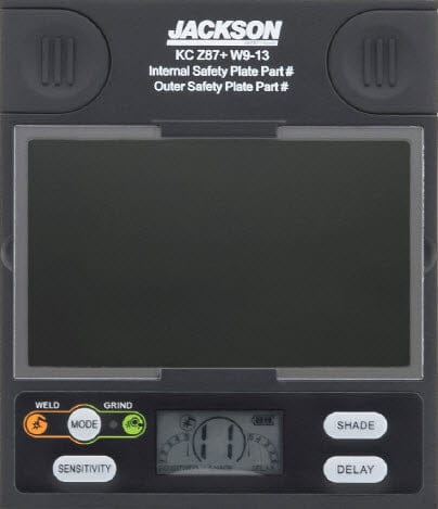 Jackson® Black Insight® auto-darkening welding helmet features variable shade 9-13 lens with digital controls. It has four arc sensors and can be set in weld mode or grind mode. The large 3.93" X 2.36" viewing area also comes standard with sensitivity and delay settings.