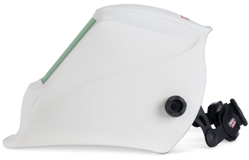White helmet shell is made from heavy duty nylon and features Lincoln's pivot headgear.