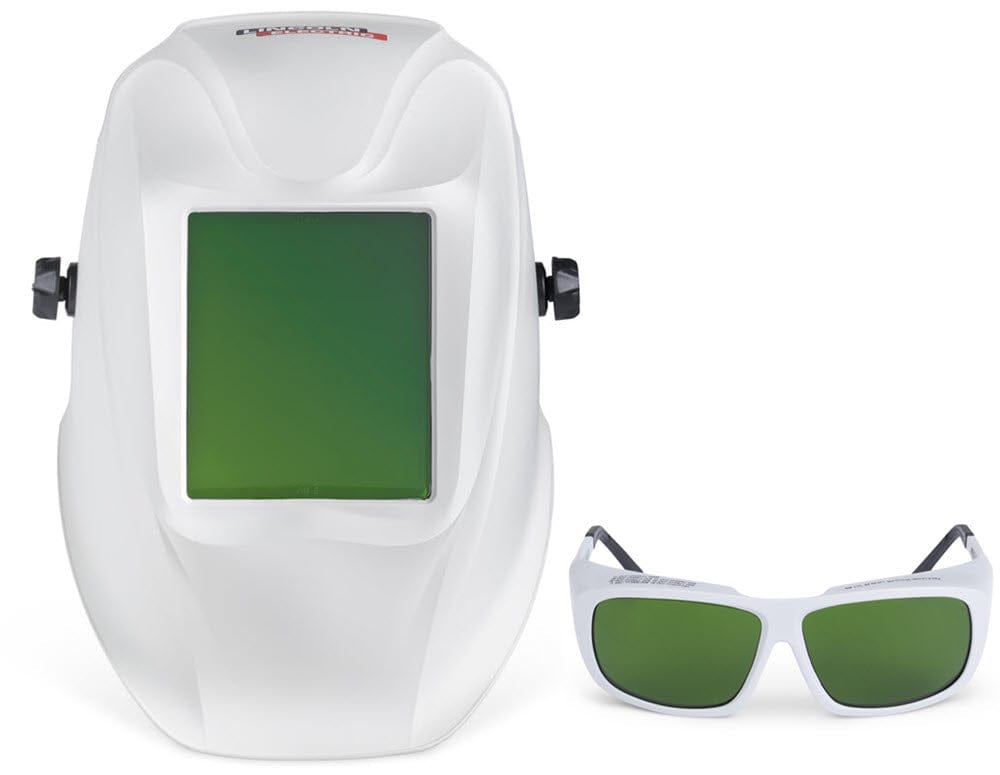Genuine Lincoln® Viking™ FLZ Passive Laser Welding Helmet Package comes complete with a passive laser welding hood and laser welding safety glasses. The helmet/safety glasses have an OD 7+ rating and are designed for use with lasers operating in the 866-1100 nm range. The helmet assembly features a nylon shell and comes complete with pivot headgear. The wraparound design of the safety glasses protects your eyes from reflected laser light. Their polycarbonate construction is durable and resisits impacts.