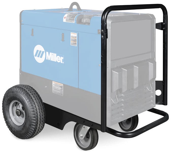 Miller® Multi-Terrain Running Gear w/Never Flat™ Tires is recommended for all surfaces and applications. Includes two heavy-duty 15-inch Never Flat™ tires, two 8-inch rubber swivel casters, and a heavy-duty handle.  Running gear allows for easy movement around the jobsite.