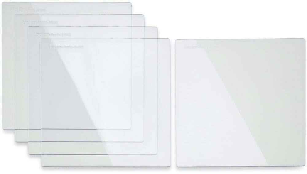 Package of 5 - Genuine Miller® Welding Helmet Replacement Safety Plate. 4 1/2 inch X 5 1/4 inch plate functions as an inside cover lens for Miller passive shade welding helmets OR as an outside cover lens for Miller Classic VSi™ welding helmets.