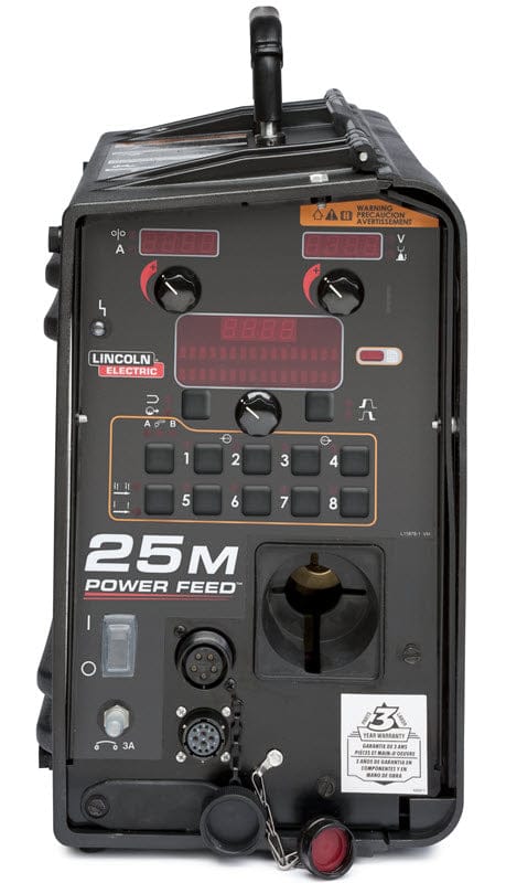 The Lincoln® Power Feed® 25M Wire Feeder (Plastic Case) is an advanced shop or field MIG wire feeder that has pulsed MIG, STT® (Surface Tension Transfer®) and aluminum push-pull welding capabilities. The Power Feed 25M comes standard with state-of-the-art ArcLink® communication between the feeder and the welding power source. ArcLink means lightning-fast full remote welding process and output control at the feeder - no need to go back-and-forth to the welder.