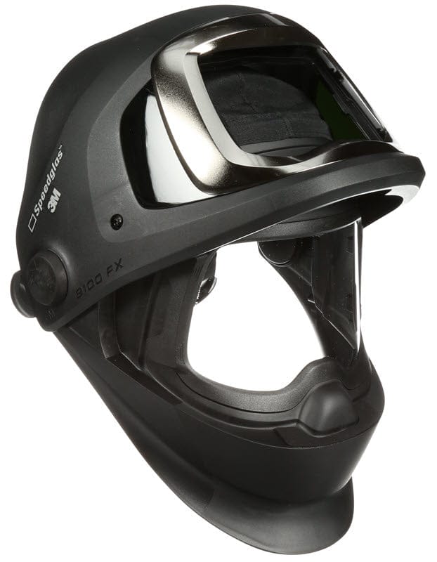 Genuine Speedglas™ replacement 9100FX Welding Helmet Shell with Side Windows, Headband, Clear Grinding Visor and Front Panel. The entire front portion of the helmet flips up to reveal a large polycarbonate grinding shield. The 9100FX helmet shell accommodates Speedglas 9100V, 9100X, 9100XX or 9100XXi lens cartridges.
