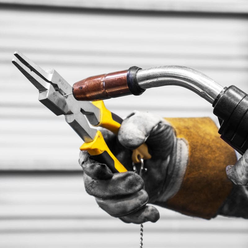 The PM12 Deluxe MIG pliers are an 8 in 1 multi-purpose welding tool. The PM12 piers feature a comfortable grip. They are ideal for weld wire cutting, MIG nozzle cleaning, parts change-out and numerous other functions. PM12 MIG pliers come complete with retention chain.