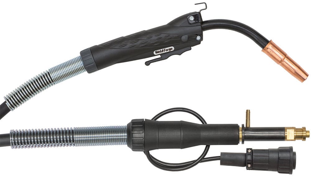 The Weld-Forge™ Tweco®-Style No. 2 MIG gun is a 250 amp, 15 foot MIG gun that connects directly to your Lincoln® LN-7®, LN-8®, LN-9®, or LN-25® wire feeder. It is rated at 250 amps at 100% duty cycle using CO2 shielding gas. It comes with Classic Series Tweco®-consumables, and comes ready to feed .030-.035 or .035-.045 diameter MIG welding wire.