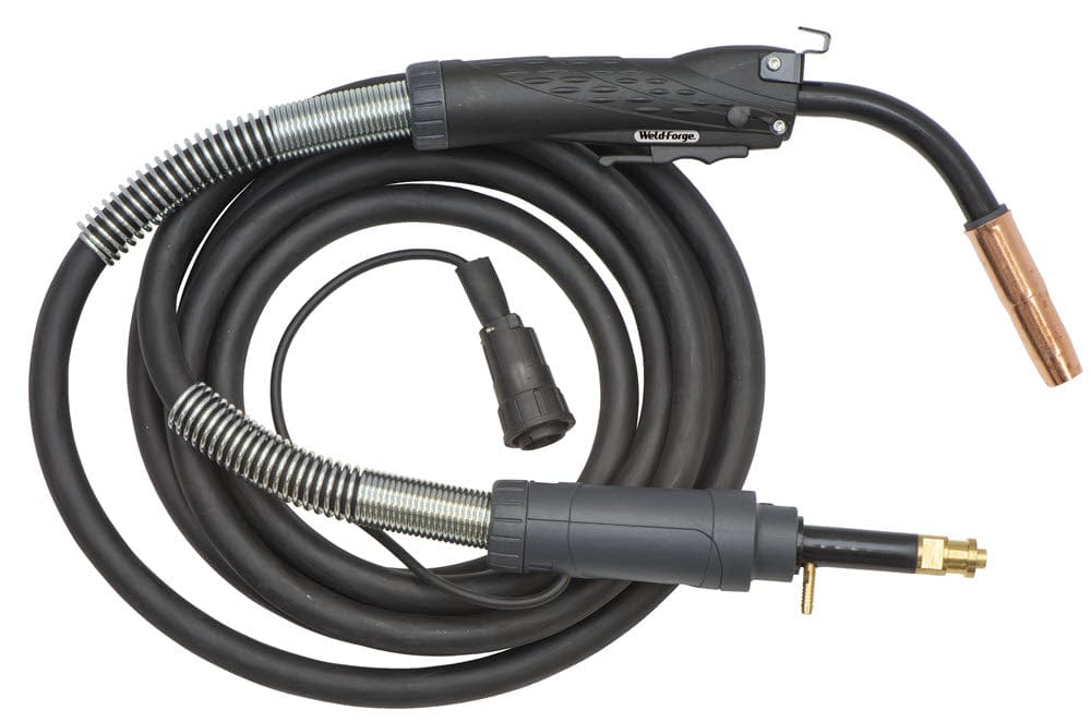 The Weld-Forge™ Tweco®-Style No. 4 MIG gun is a 400 amp, 15 foot MIG gun that connects directly to your Lincoln® LN-7®, LN-8®, LN-9®, or LN-25® wire feeder. It is rated at 400 amps at 60% duty cycle using CO2 shielding gas. It comes with Classic Series Tweco®-consumables, and comes ready to feed .035-.045 or .045-1/16 diameter MIG welding wire.